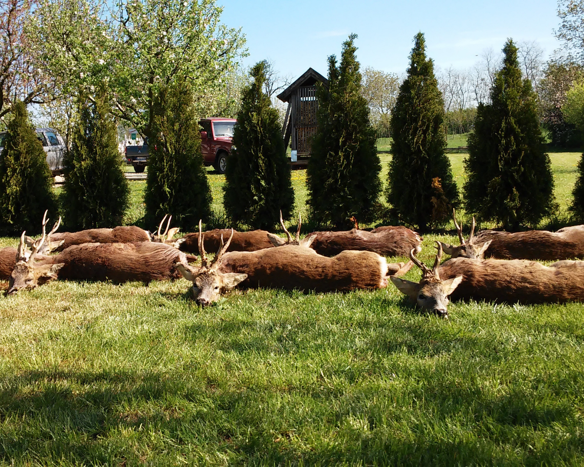 Az őzbak vadászati idénye április 15-én kezdődik. Ilyenkor mielőtt megnő a takarás, könnyebben vadászható, hatékonyan lehet öreg, erős trófeájú bakokat terítékre hozni. Ebben az időszakban, akár nagyobb csoportok részére is tudunk eredményes vadászatot szervezni.